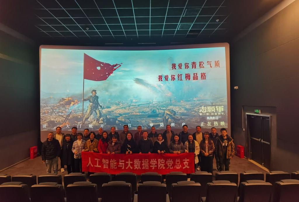 为深入贯彻学习习近平新时代中国特色社会主义思想,弘扬伟大的爱国主义精神,2025年11月27日下午,人工智能与大数据学院党总支组织党员教师开展爱国主义教育观影活动,集体观看《志愿军:浴血和平》,旨在从抗美援朝精神中汲取力量,赋能教育教学工作。