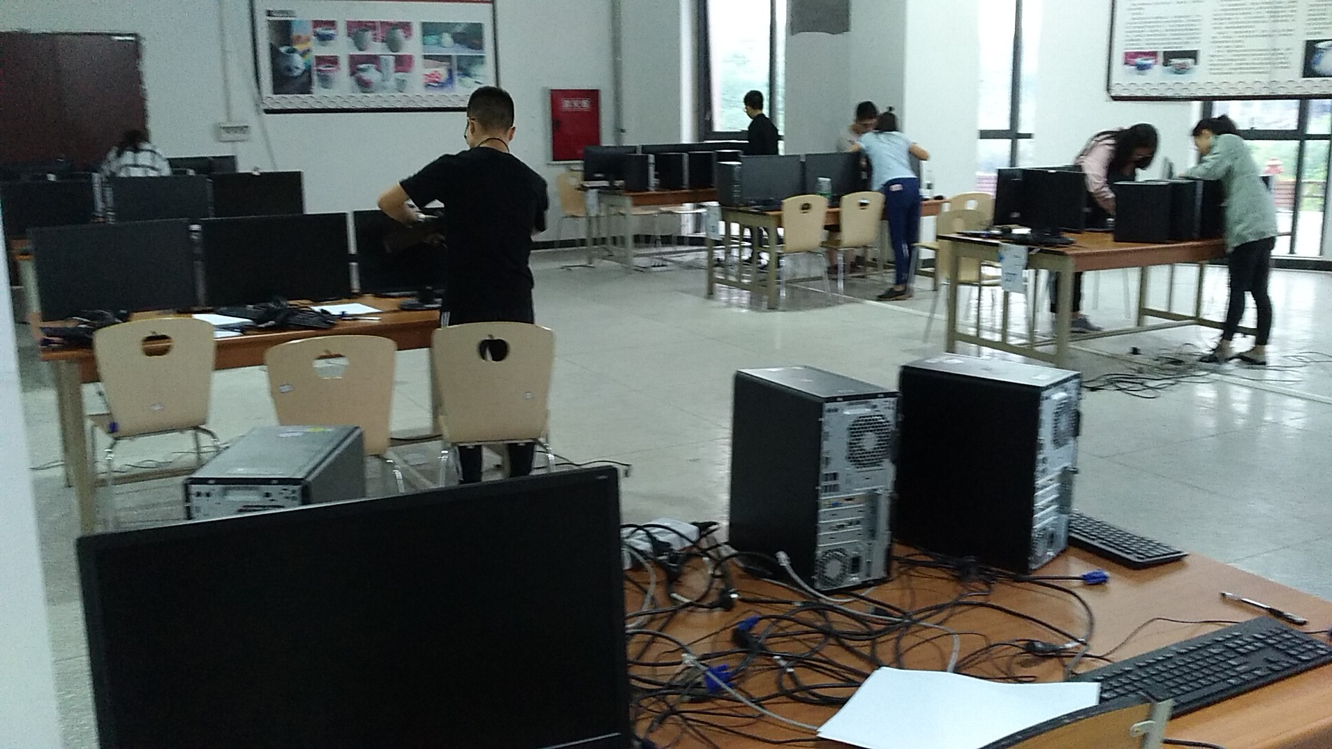 4月13日的四川省移动互联网应用软件开发大赛在图书馆1楼举行,由于比赛场地需要全部重新布置,需要将80多张桌子、200多台电脑、150多条凳子搬运到此,并组建由4台电脑构成的局域网。针对比赛当日任务安排,我院老师专门开展相关培训,从联系参赛学校、酒店接待相关事宜、注册报道顺序、场地持续维护等方面对志愿者进行细致教导,严格把控赛事各阶段流程。为了保证学校的正常上课秩序,在比赛次日就将所有电脑拆卸并搬到指定教室,此次比赛前后出动了近200名志愿者。