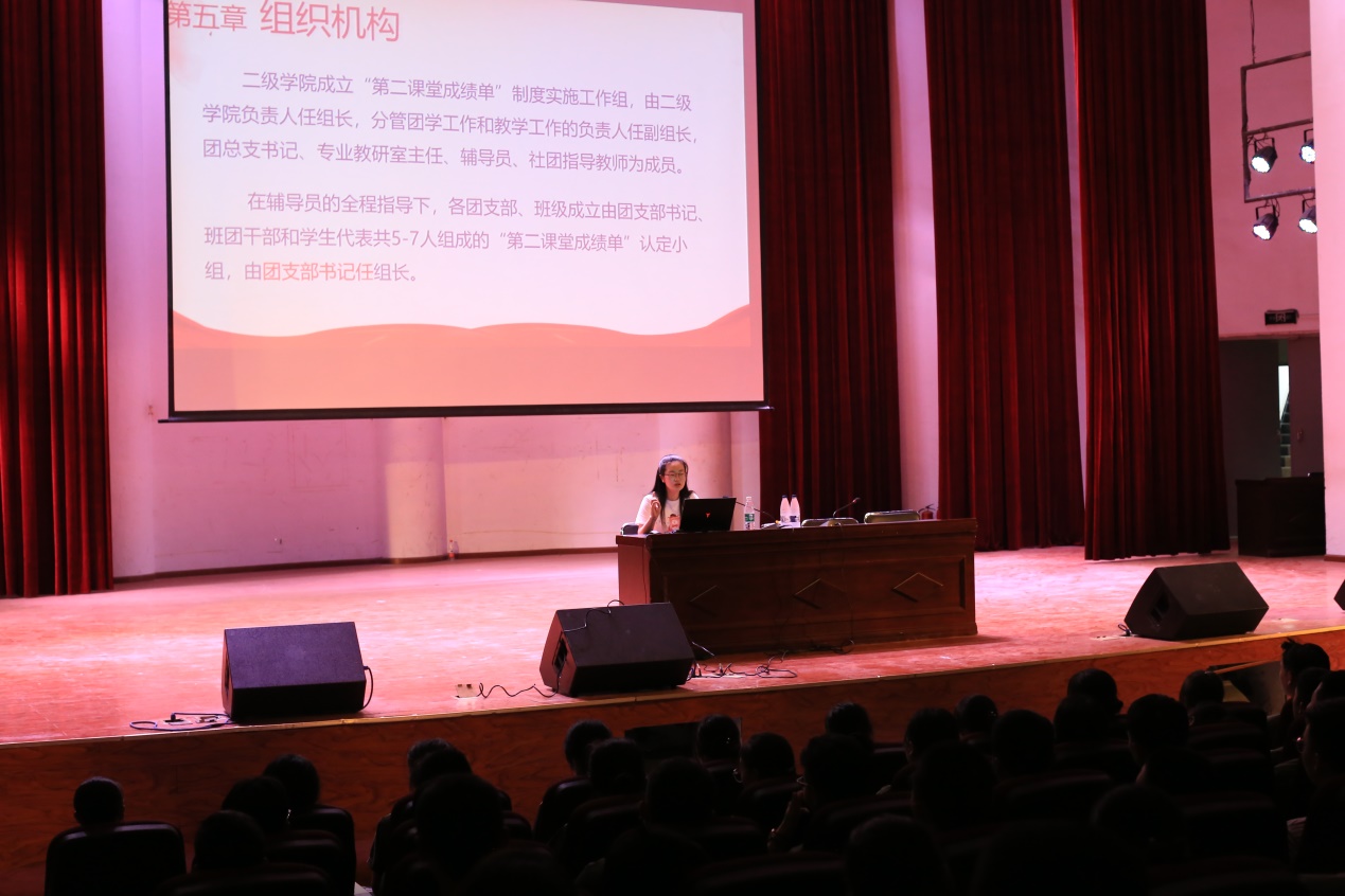 讲座开始,校团委副书记邹烨燔为同学们讲解泸州职业技术学院学生课外学分暨“第二课堂成绩单”管理方法,第二课堂是指学生在课堂教学以外,通过参与校内外的各类实践、活动、竞赛等,提高综合素质,“第二课堂成绩单”是大学生综合素质建设体系中的重要组成部分,是学校深化学分制改革的重要内容,是对人才培养方案有关规定的细化和落实。