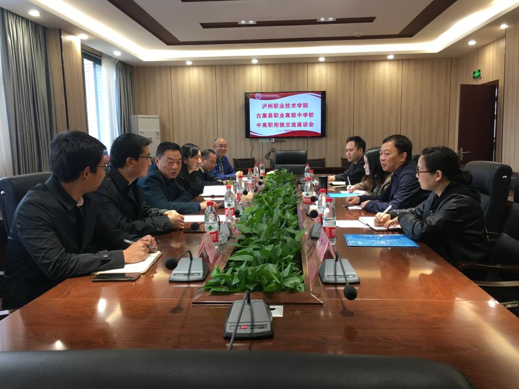 会上,吴代彬首先简要介绍了学校的基本概况、各院部对口专业的特点,对进一步加强同古蔺县职业高级中学校的深入合作,有效整合职业教育资源优势,开展好中高职衔接的具体落实工作交换了意见。