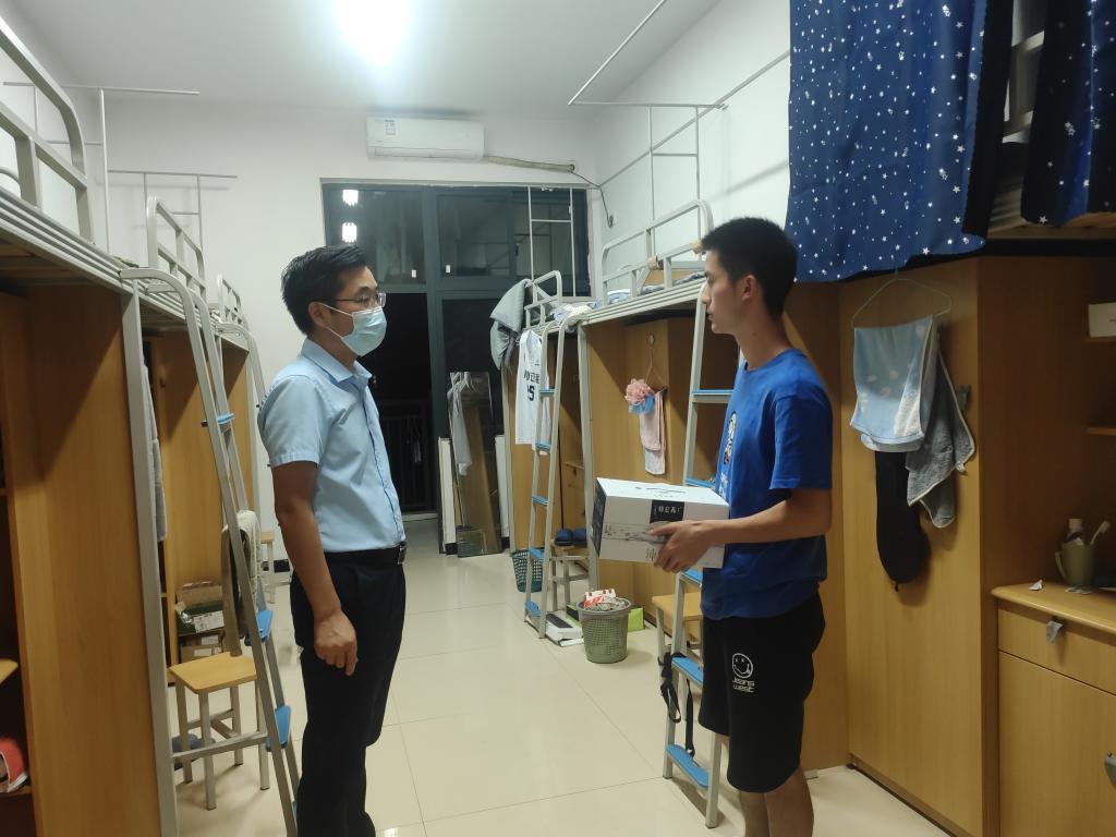 为做好疫情防控,加强学生思想引导工作,8月31日晚,人工智能与大数据学院院长卢正才带领留校党员教师,深入寝室关心慰问返校学生。