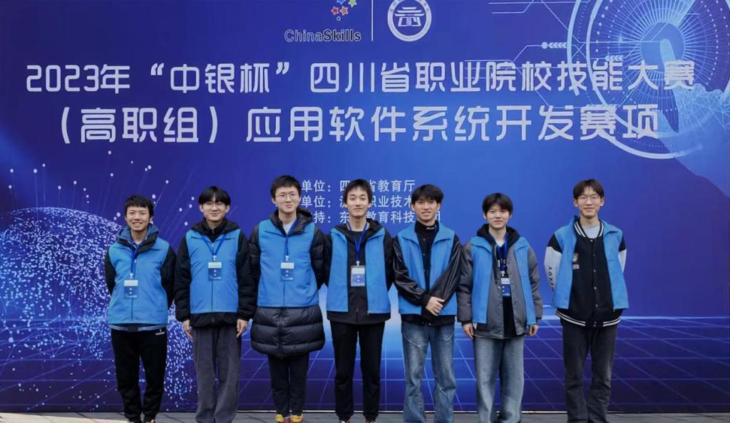 在应用软件系统开发赛项中,我院2021级学生杜俊枫、白宇晨、谢广、谭锦豪、陆春宏、陈良浩和2022级学生张维艺、罗钎、黄锐在指导教师陈玲、夏汛、高娜、牟斌皓的带领下获得一等奖2项,二等奖1项。